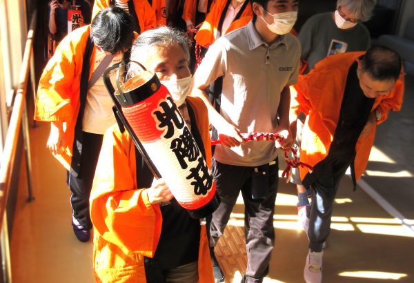秋の日差しが気持ちの良い中、光陽荘で秋祭りを行いました。 手作りの屋台をみんなで引いて、威勢良く掛